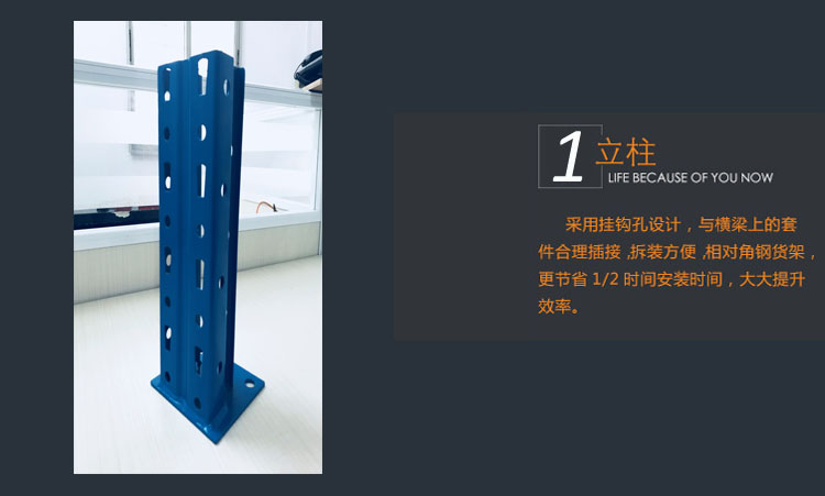 2、立柱由熱軋板折出多個角度而成,故貨架的承重力大。