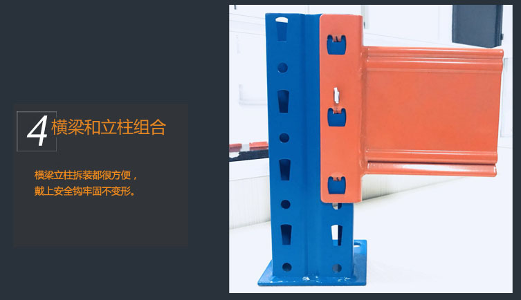 4、立柱設有每75mm調節(jié)孔距,可根據貨物高低任意調節(jié)。